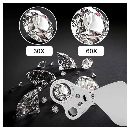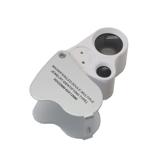 ذره بین دو لنز تاشو 9889 30X 60X مجهز به نور LED