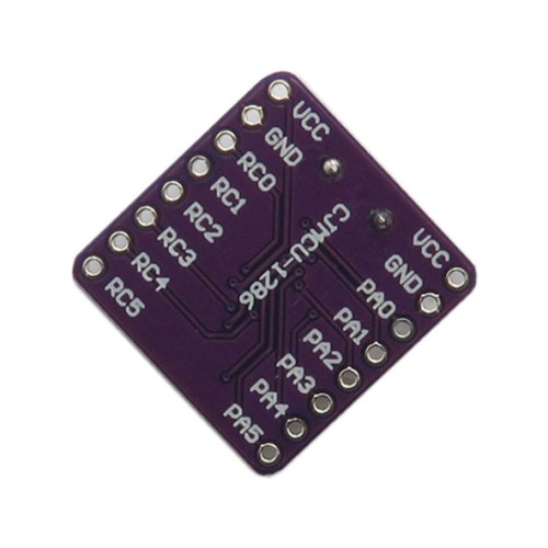 برد توسعه PIC16F1823 مدل CJMCU-1286 یک سیستم حداقلی میکروکنترلر با عملکرد پایدار و قابلیت اطمینان بالا است که برای پروژه های صنعتی, رباتیک و آموزشی طراحی شده است. این برد با ولتاژ کاری 1.8 ولت تا 5.5 ولت عمل می کند و به دلیل اندازه کوچک و منابع داخلی محدود، استفاده از آن بسیار ساده و کاربرپسند است. برد توسعه PIC16F1823 از یک پردازنده 8 بیتی میان رده با 49 دستور اجرایی بهره می برد و دارای قابلیت اجرای وقفه با ذخیره سازی خودکار کانتکست است که اجرای برنامه ها را با دقت بالا تضمین می نماید. استک سخت افزاری برد 16 سطح دارد و قابلیت بازنشانی Overflow و Underflow را پشتیبانی می کند، که ثبات پردازش داده ها را در پروژه های حساس تضمین می نماید.
