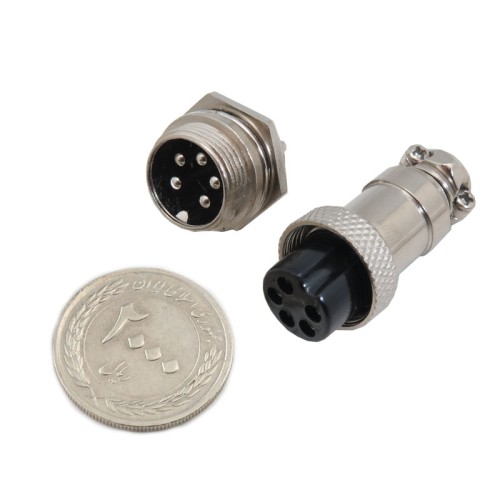 کانکتور نظامی فلزی 5 پین مدل GX-16 با روکش نیکل 5 آمپر 125 ولت