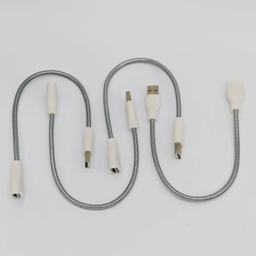 این کابل فلزی USB نری به مادگی با روکش انعطاف پذیر خود، قابلیت خم شدن در زوایای مختلف را دارد و امکان تنظیم نور چراغ در هر جهت دلخواه را فراهم می کند. به دلیل عدم انتقال داده، کابل فقط برای تامین توان چراغ های USB ، چراغ کیبورد و نورپردازی تزیینی استفاده می شود. این ویژگی باعث افزایش دوام کابل و حذف نویزهای احتمالی ناشی از انتقال دیتا می گردد.
