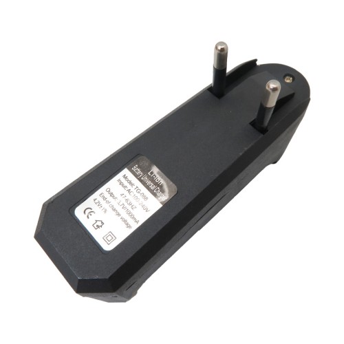 Patented design with built-in switching power supply and global voltage compatibility. Direct plug-in to mains with a rotary plug for easy use and portability. Supports nominal 3.6 to 3.7 volt lithium-ion batteries in various sizes including 18650, 14500, and 16340. Certified with CE, featuring a flash function, compatibility with older lithium batteries, and environmentally friendly support.
