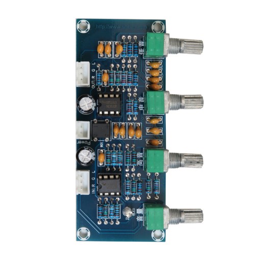 The XH-A901 module is a high-quality stereo preamplifier designed to amplify audio signals before sending them to the main amplifier, allowing you to enhance the sound quality of your system to a higher level. The module has four volume controls for fine-tuning bass, treble, overall volume and midrange, helping you fine-tune the sound to your taste and enjoy a pleasant audio experience. The module uses the NE5532 chip, which is known for its excellent audio performance and low noise.