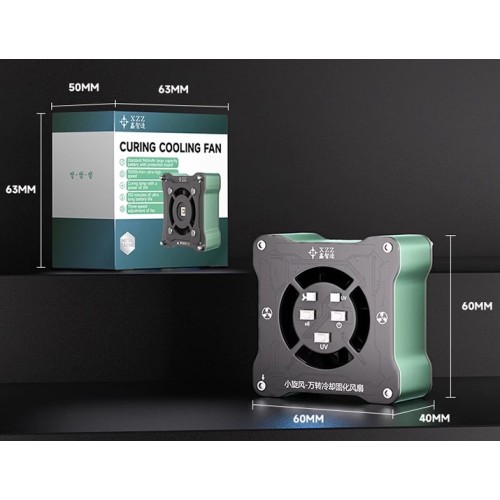 طراحی جمع و جور و ابعاد 60×60 میلی متر و وزن سبک 119 گرمی و بدنه آلمینیومی دستگاه، استفاده آسان با یک دست را ممکن کرده و حمل و نقل آن را بسیار ساده می سازد. در مجموع، فن و لامپ UV سه کاره XZZ گزینه ای مناسب برای تعمیرکاران موبایل، تعمیر بردهای الکترونیکی، تعویض گلس، خشک کردن چسب LOCA و OCA و کارگاه های تخصصی تعمیرات است که به دنبال سرعت، ایمنی و کارایی بالا هستند.