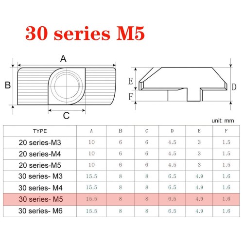 مهره تی M5-30 برای اتصالات پروفیل های آلومینیومی سری 30 مناسب است. سر چکشی آن باعث میشود مهره در شیار ثابت بماند و امکان سفت کردن پیچ به بهترین شکل فراهم گردد. استفاده از مهره تی باعث افزایش استحکام سازه ها، کاهش خطر شل شدن اتصالات و دوام طولانی مدت سیستم های مدولار میشود.