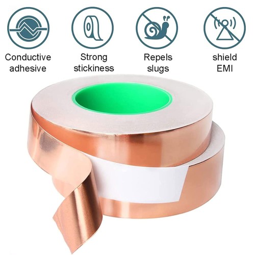 چسب نواری فویل مسی رسانای یک طرفه عرض یک سانت برای شیلدینگ و اتصال زمین