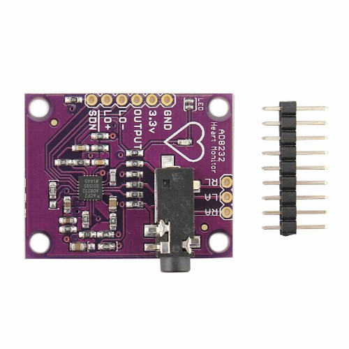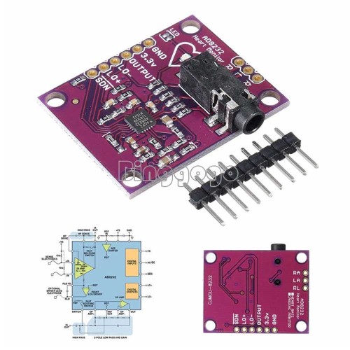ماژول سنسور الکتروکاردیوگرافی AD8232 ECG یک ابزار پیشرفته برای اندازه گیری فعالیت الکتریکی قلب است که خروجی آنالوگ دقیق و قابل اعتماد ارائه می دهد. این ماژول با چیپ اصلی AD8232 طراحی شده و قادر است سیگنال های کوچک قلب را از نویز های محیطی تشخیص داده و آن ها را تقویت نماید. سنسور ضربان قلب AD8232 برای مانیتورینگ سلامت و ورزش مناسب است و می توان آن را در پروژه های پزشکی و تحقیقاتی به کار برد. ورودی این ماژول در محدوده 2 ولت تا 3.5 ولت عمل می کند و ولتاژ پیشنهادی آن 3.3 ولت DC است ، جریان ورودی تنها 170 میکرو آمپر می باشد و خروجی آن از طریق پین هدر 2.54 میلی متر یا جک استریو قابل دسترسی است.