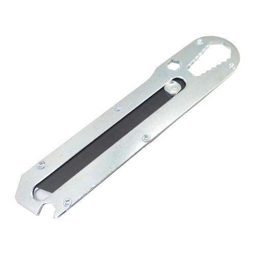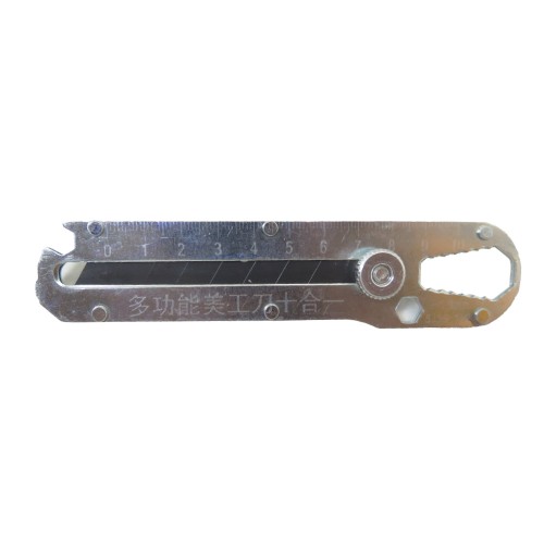 تیغه این کاتر از استیل ضد زنگ با طول 10 سانتی متر ساخته شده و برش دقیق و قدرتمندی ارائه می دهد. زاویه تیغه کمتر از 60 درجه است تا عملکرد برش بهینه و راحتی کاربر را فراهم کند. این ابزار دارای قابلیت های متنوعی است که شامل پیچ گوشتی، بازکننده پیچ و مهره، دربازکن قوطی، شکستن شیشه، خط کش، بازکننده بطری، کاتر اصلی، آچار چندکاره و تیغه قابل تعویض برای تمیزکاری با ایجاد زاویه 90 درجه برای کف و سرامیک می باشد.