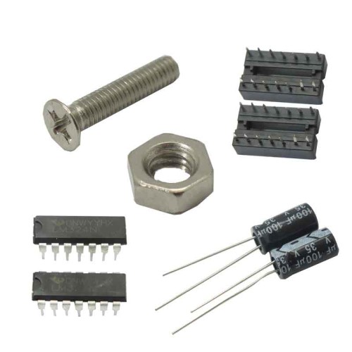 - یک بسته شامل ترانزیستور، ال ای دی، مقاومت، پین هدی، بیس آی سی، رگولاتور، اپ امپ، پتانسیومتر، خازن
