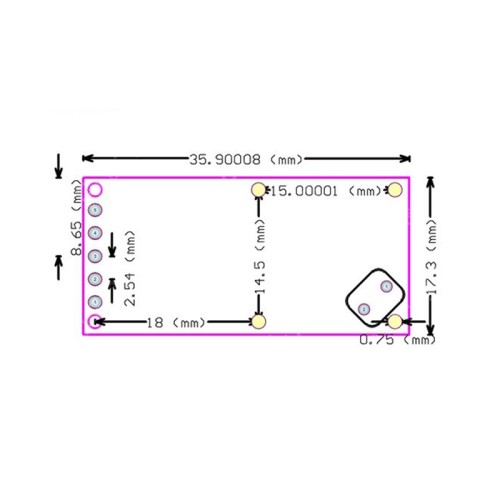 - ابعاد فیزیکی ماژول: 39 × 18 میلیمتر